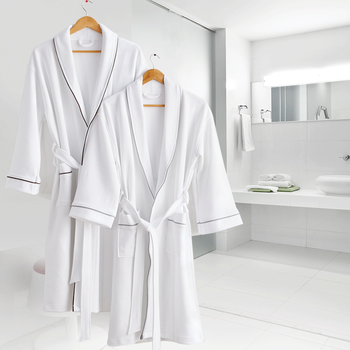 定制五星级酒店标志豪华管道装饰水疗浴袍100% 纯棉华夫饼编织浴袍